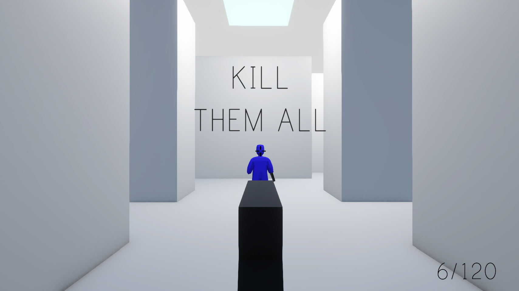 In RE-RE-RELOAD, you play through the same basic first person shooter level on loop, but with a twist. Every time you play the level, a new change will be made, for example in one instance, you have to find all 5 stars in order to continue, but in another the enemies are immune to bullets unless it hits their heads.